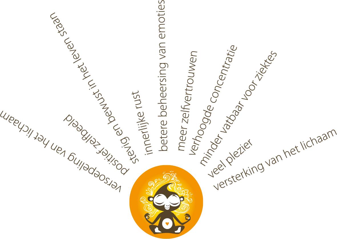 Samen met je kind bewandelen we het yogapad. Door middel van asana’s, meditatie, visualisatie, onderlinge massages, ademhalingsoefeningen en positieve affirmaties leert het kind zichzelf steeds beter kennen, leert het zijn gevoelens te uiten, leert het zijn grenzen te voelen en te accepteren. Je kind krijgt handvaten mee om zichzelf te ontspannen en om om te gaan met spanning en stress.